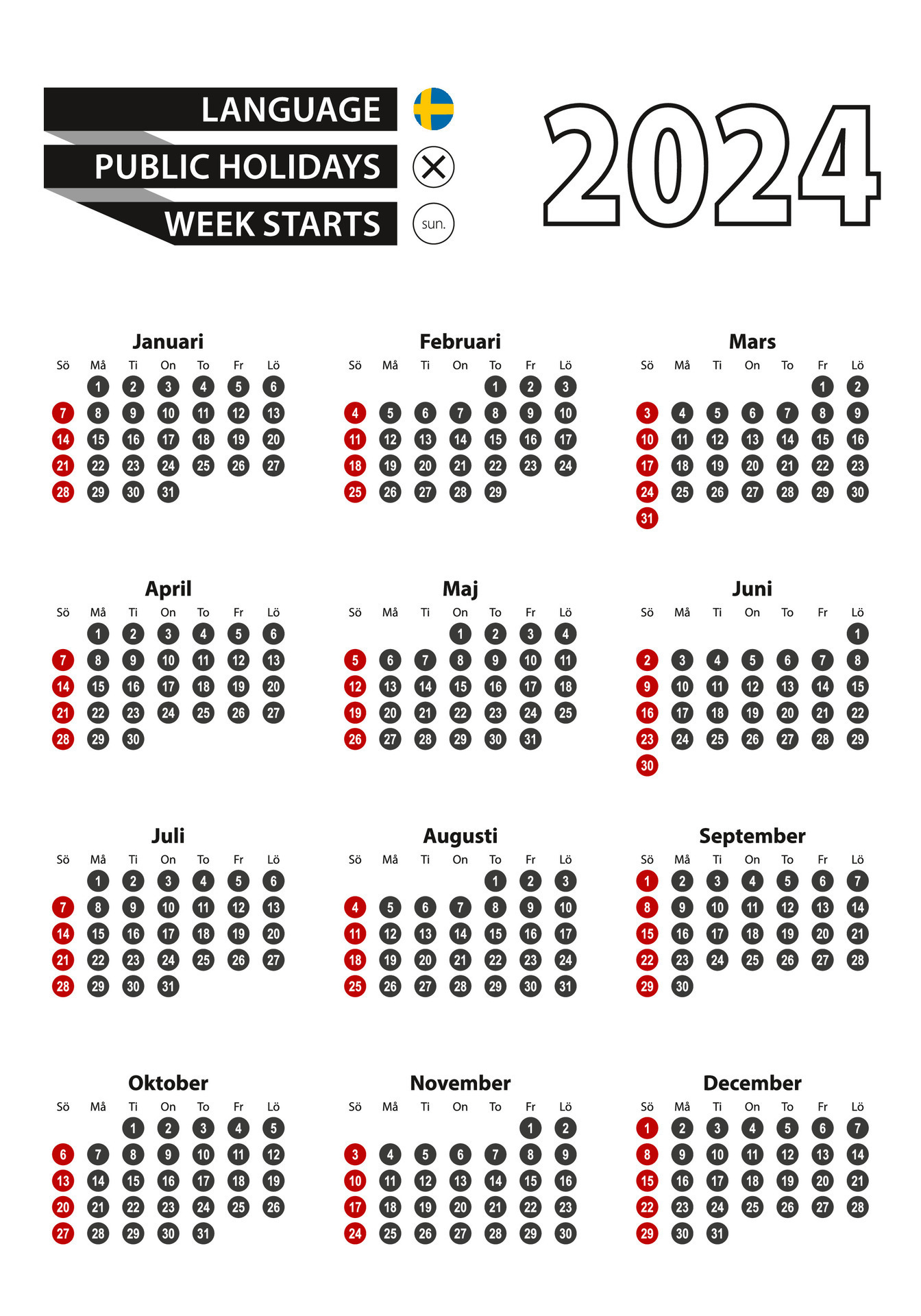 Premium Vector | Swedish calendar 2024 with numbers in circles